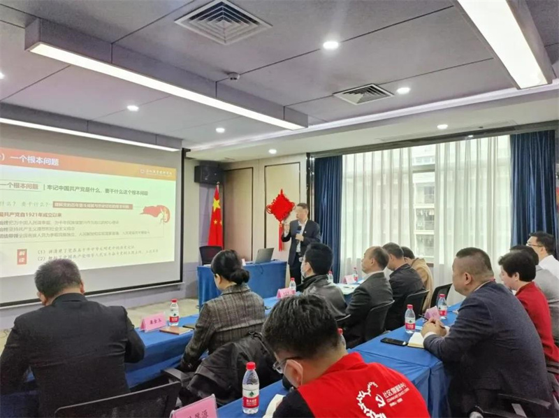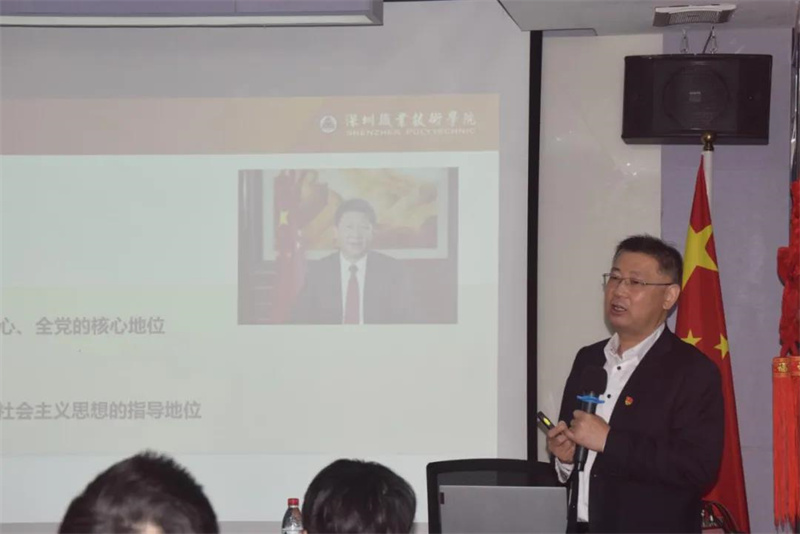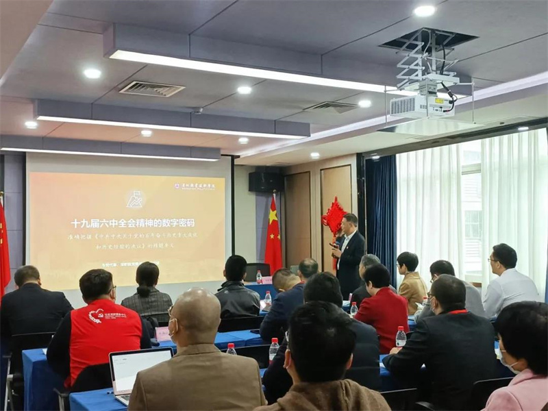 隨后,為持續推進學習和宣傳貫徹黨的十九屆六中全會精神的走深走實,會議特邀深圳市黨代表、深圳職業技術學院楊欣斌書記,做十九屆六中全會精神解讀專題授課。楊書記以“十九屆六中全會精神的數字密碼——準確把握《中共中央關于黨的百年奮斗歷史重大成就和歷史經驗的決議》的精髓要義”為題,進行了深入淺出的解讀,讓參會人員更系統、更全面、更深入地了解了黨的十九屆六中全會的重要成果及影響。