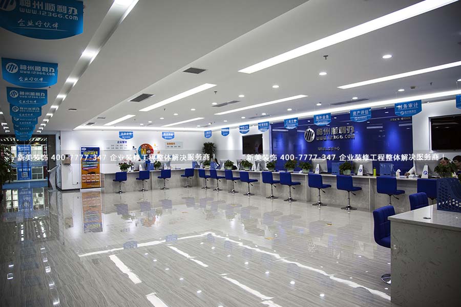 神州順利辦是現代級企業服務的締造者,解決企業在"生老病死"過程中的各種剛性服務需求。本案是其位于深圳市南山區的運營中心。電梯出口便是服務大廳,房頂直垂的提示牌讓人快速找到辦事窗口。